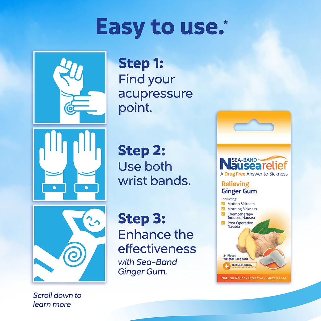 - The natural choice for nausea relief: Inspired by traditional remedies, like herbs, aromatherapy, and acupressure, sea band nausea relief items help you feel better naturally, with no drug interactions